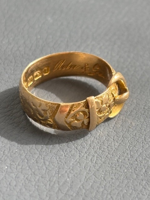Antique 18k Gold Engraved Buckle Ring