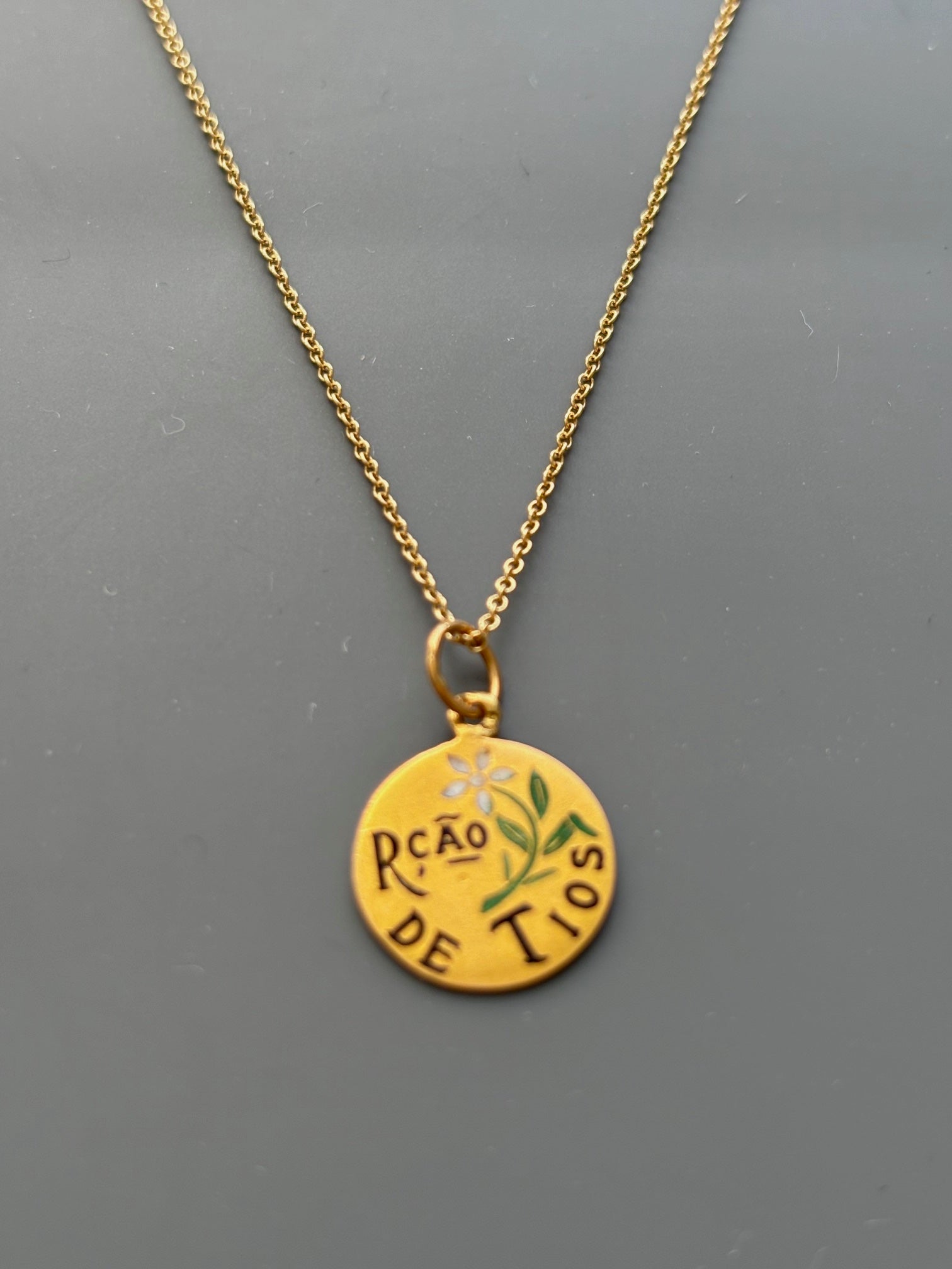 Vintage 19k Portuguese Charm on 18k Gold Chain Rcao de Tios