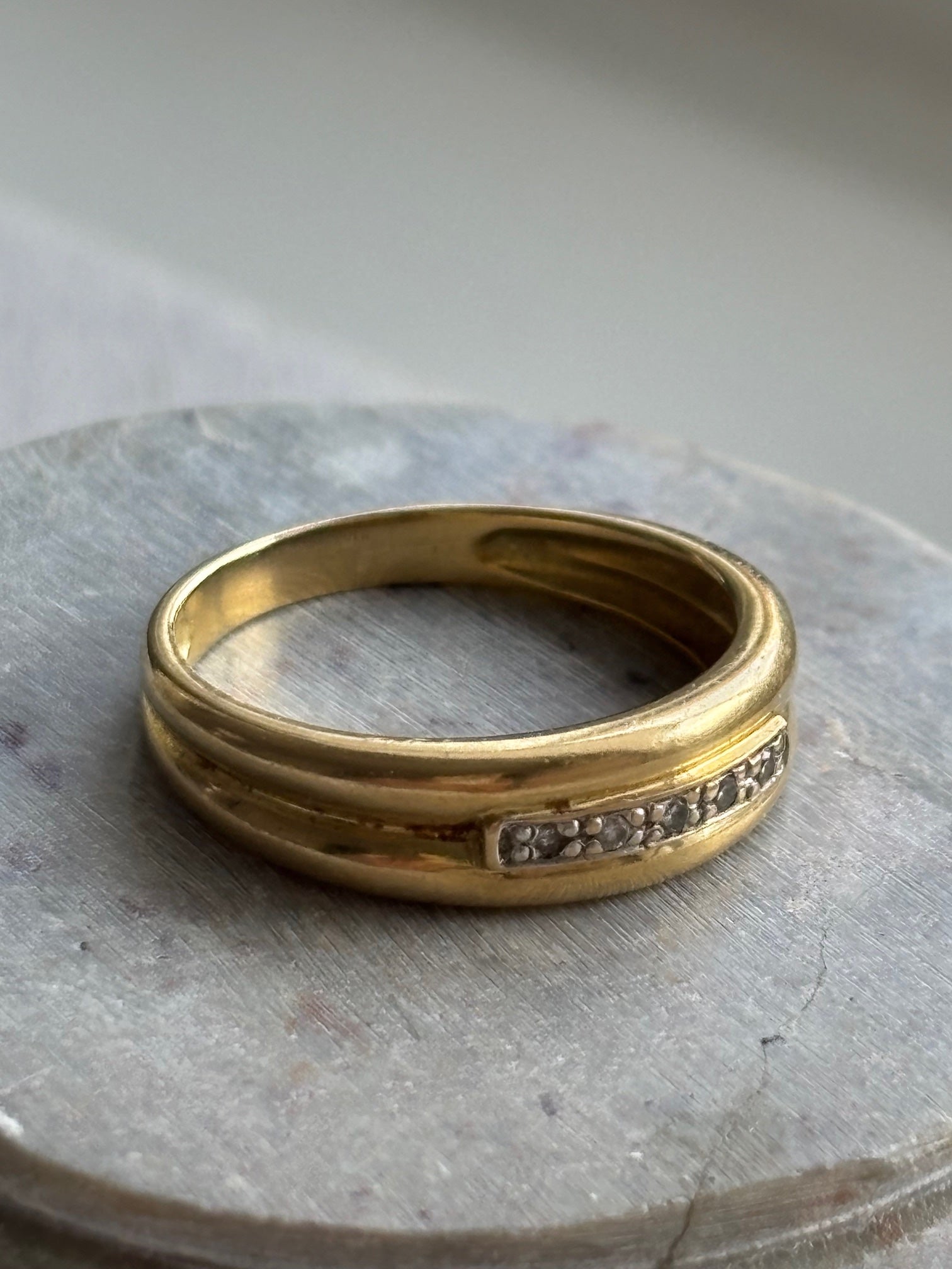 18k Gold Band Ring with Row of Central Diamonds (old cut)